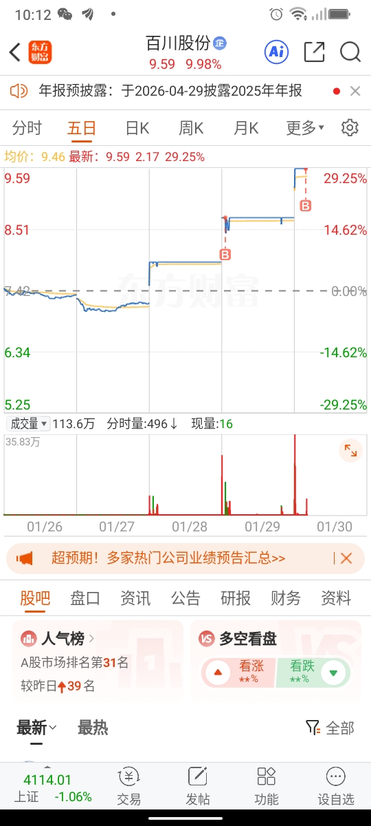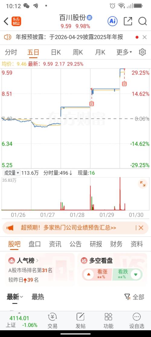 $百川股份(SZ002455)$  九个点入的,开盘有成交量放大直接满仓买了。只买龙头热点。加油