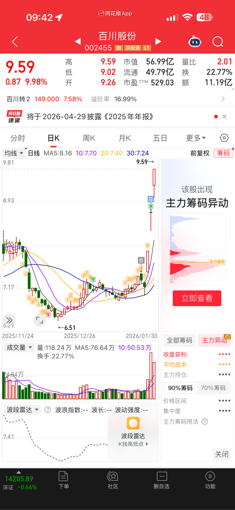 $百川股份(SZ002455)$ 卖完又买回来了