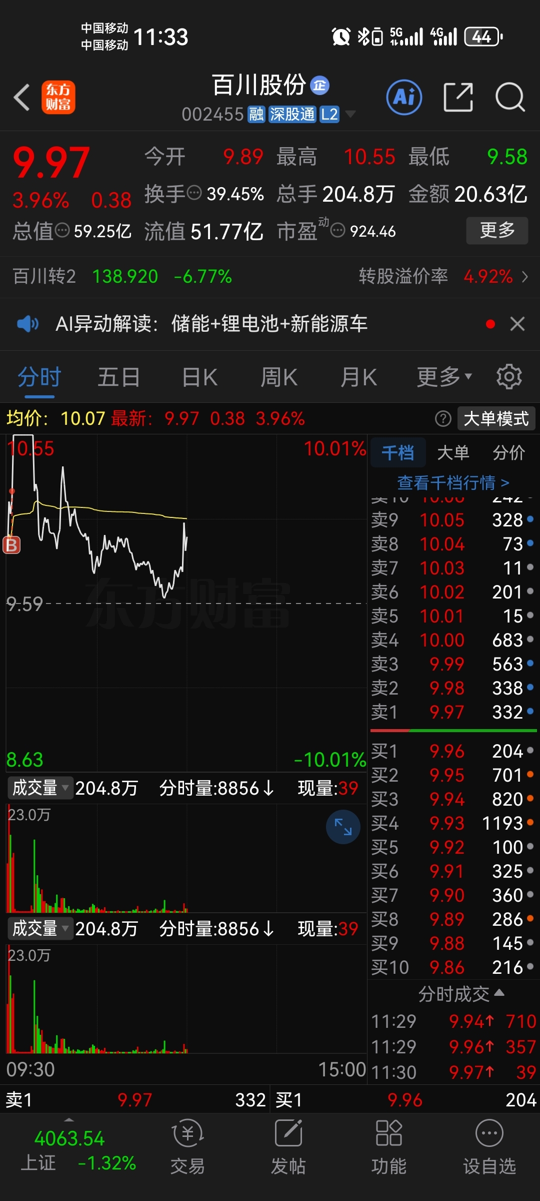 $百川股份(SZ002455)$ 天量估计明天地板,哎