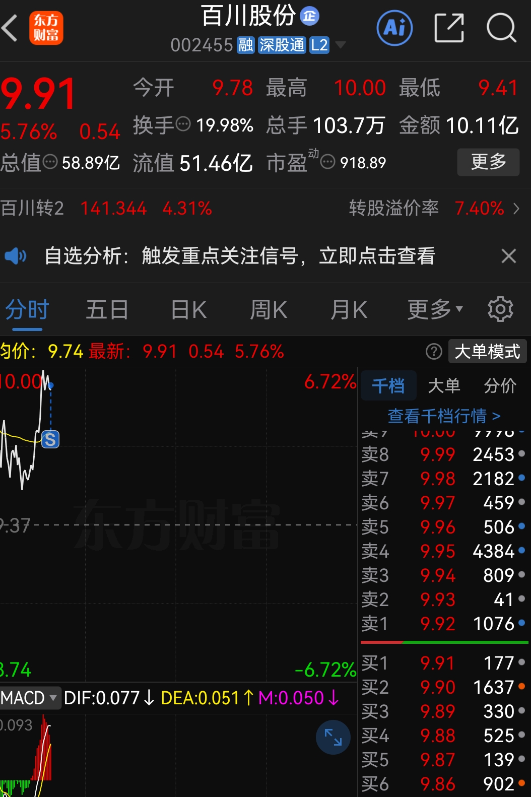 $百川股份(SZ002455)$ 888