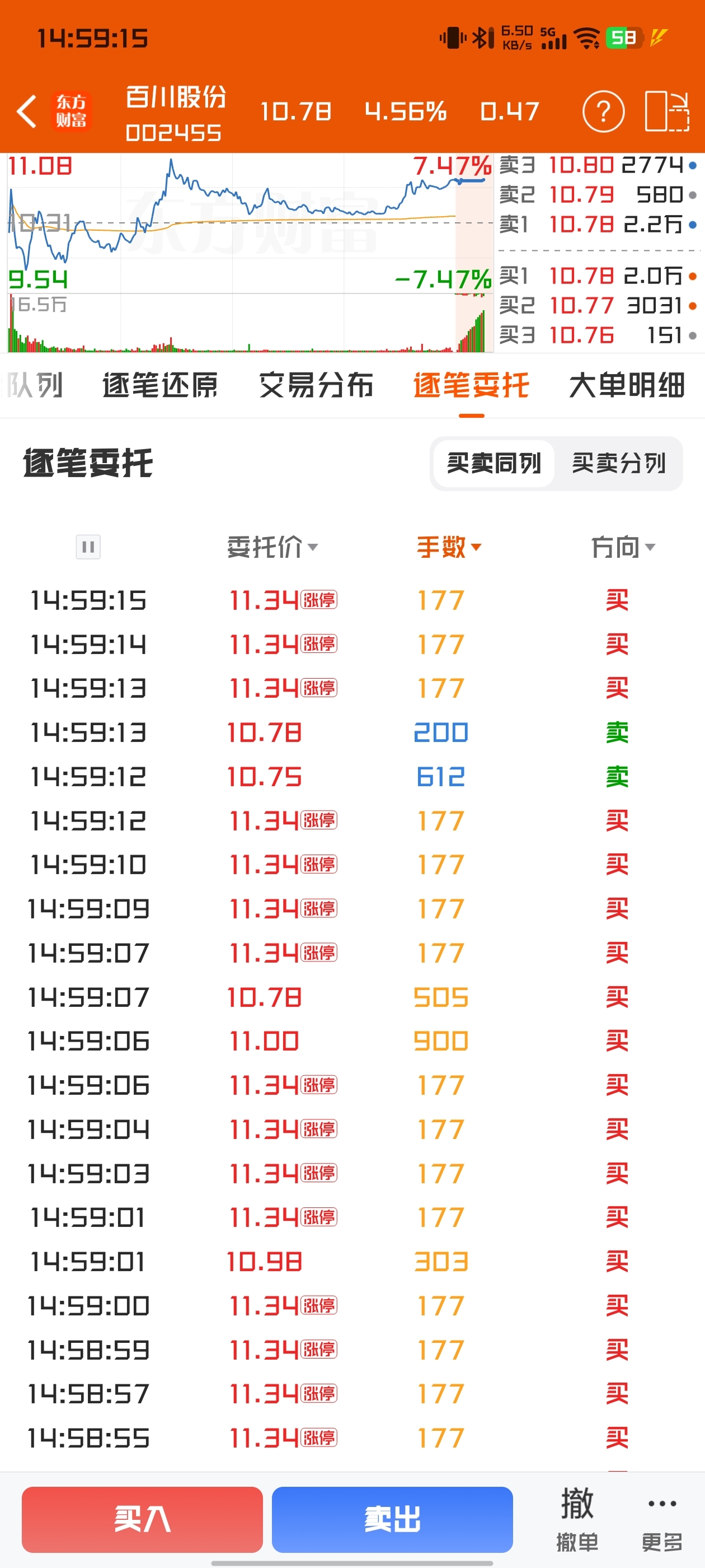 $百川股份(SZ002455)$ 一堆177的单子,是量化吗