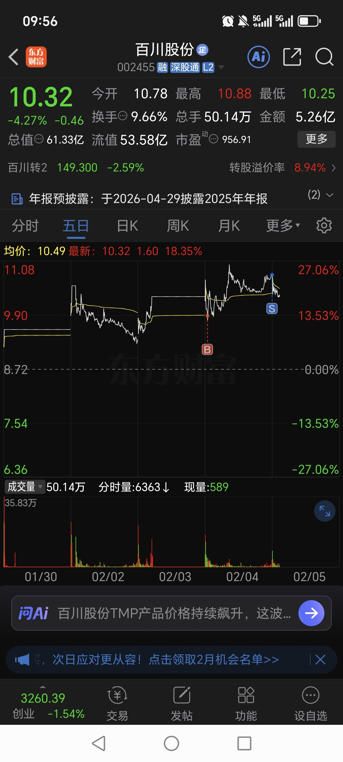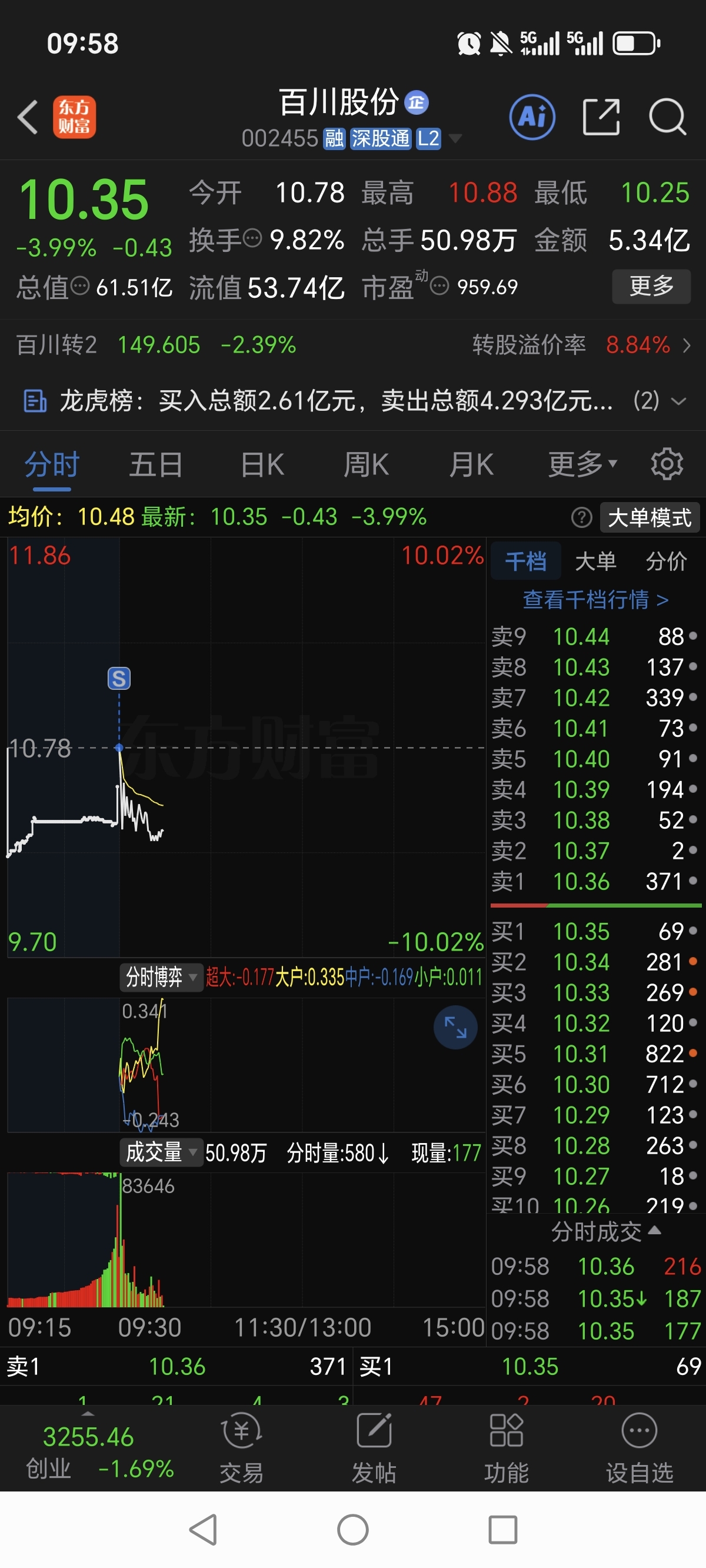 1、昨天9.88买的百川股份,早上竞价直接10.78走人,9%落袋。