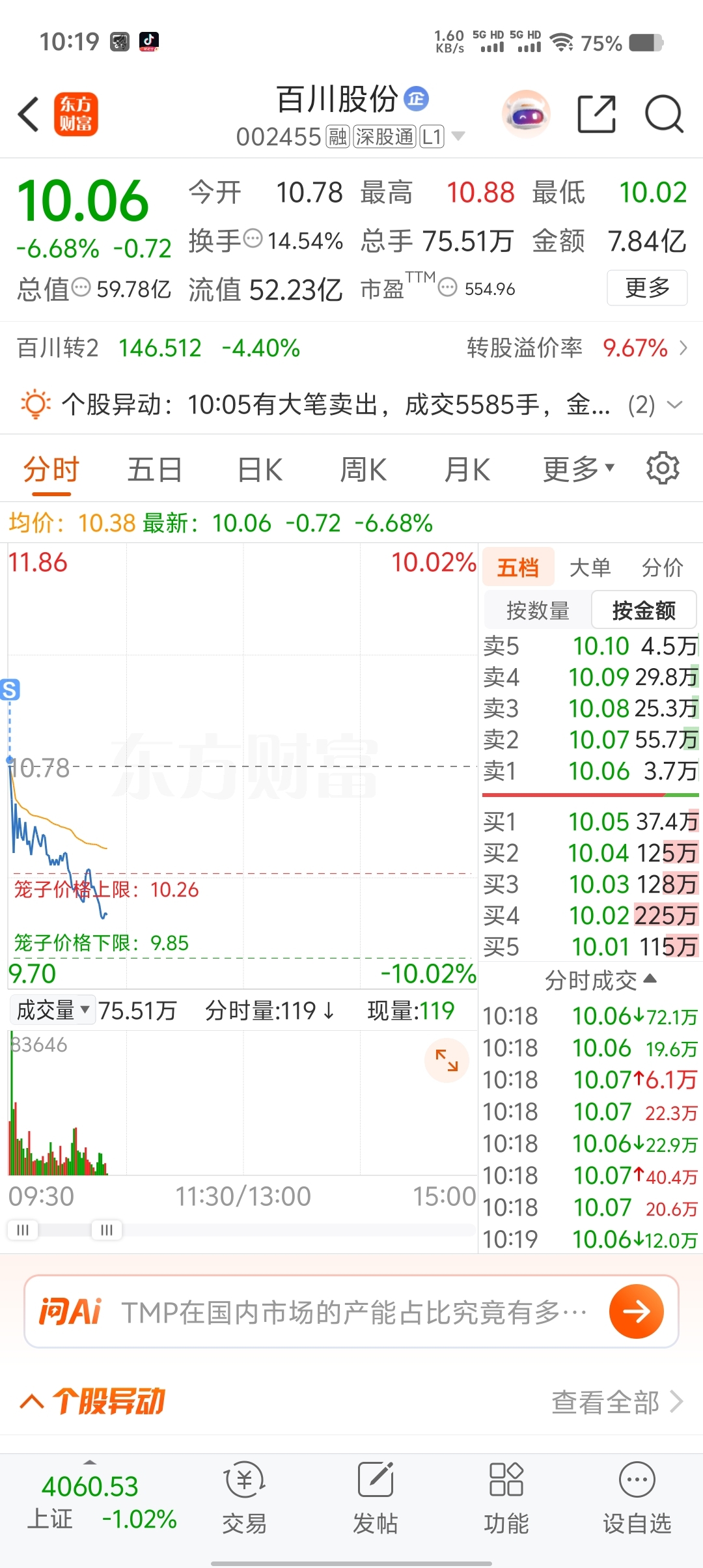 $百川股份(SZ002455)$ 卖在最高点,现在又接回来
