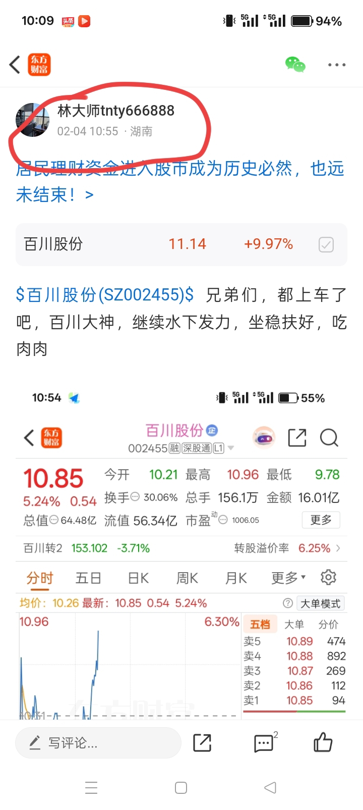 $百川股份(SZ002455)$ 百川继续封板,强者恒强,2.4号贴贴告知,兄弟们都上车了吧,拿好等待,大口吃肉