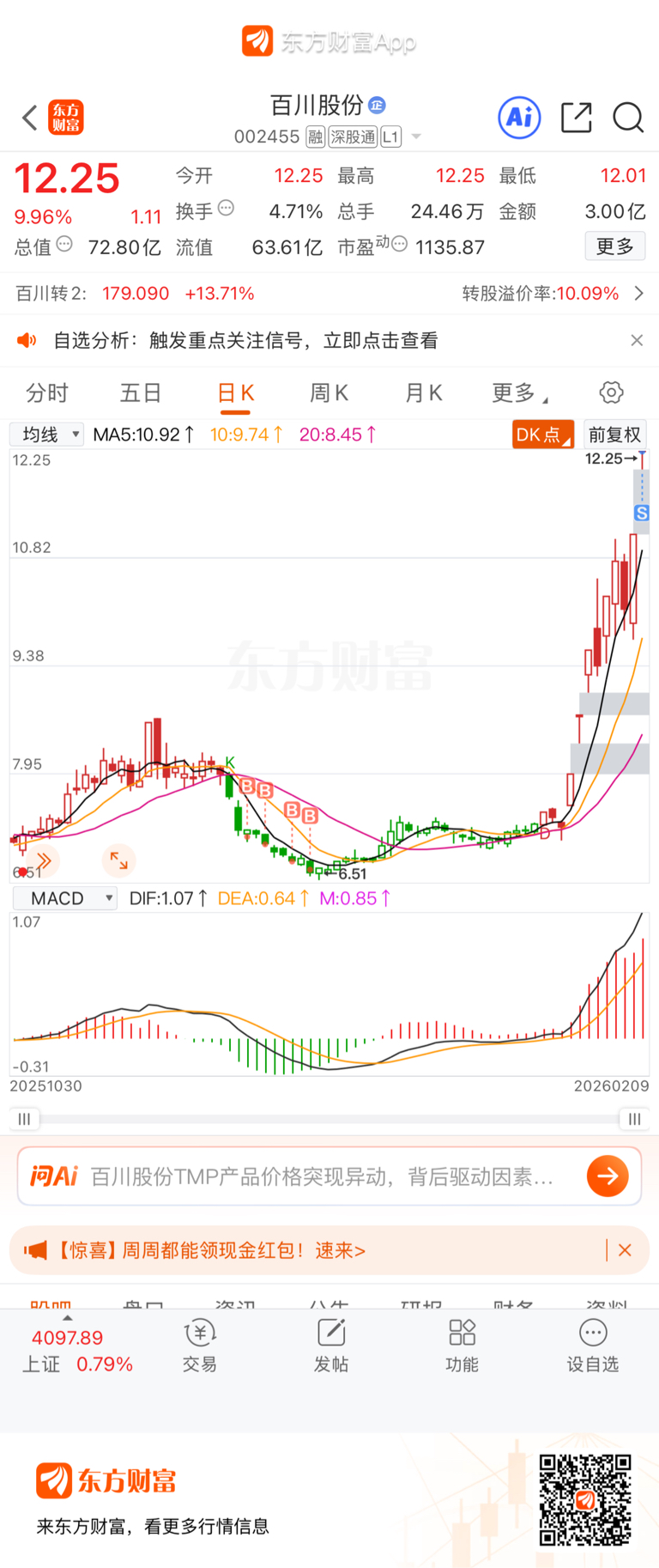 $百川股份(SZ002455)$ 出一半