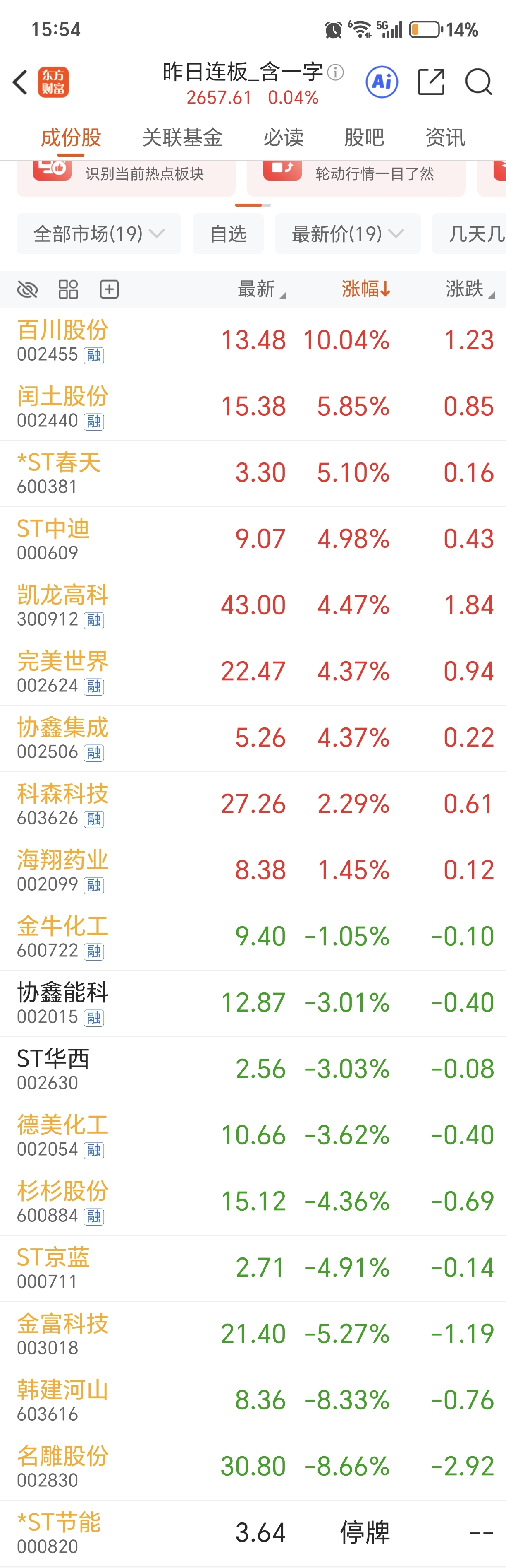昨天14只连板只有你一只晋级,也是很神奇了,今天二板几乎被ai传媒影视包圆了,就
