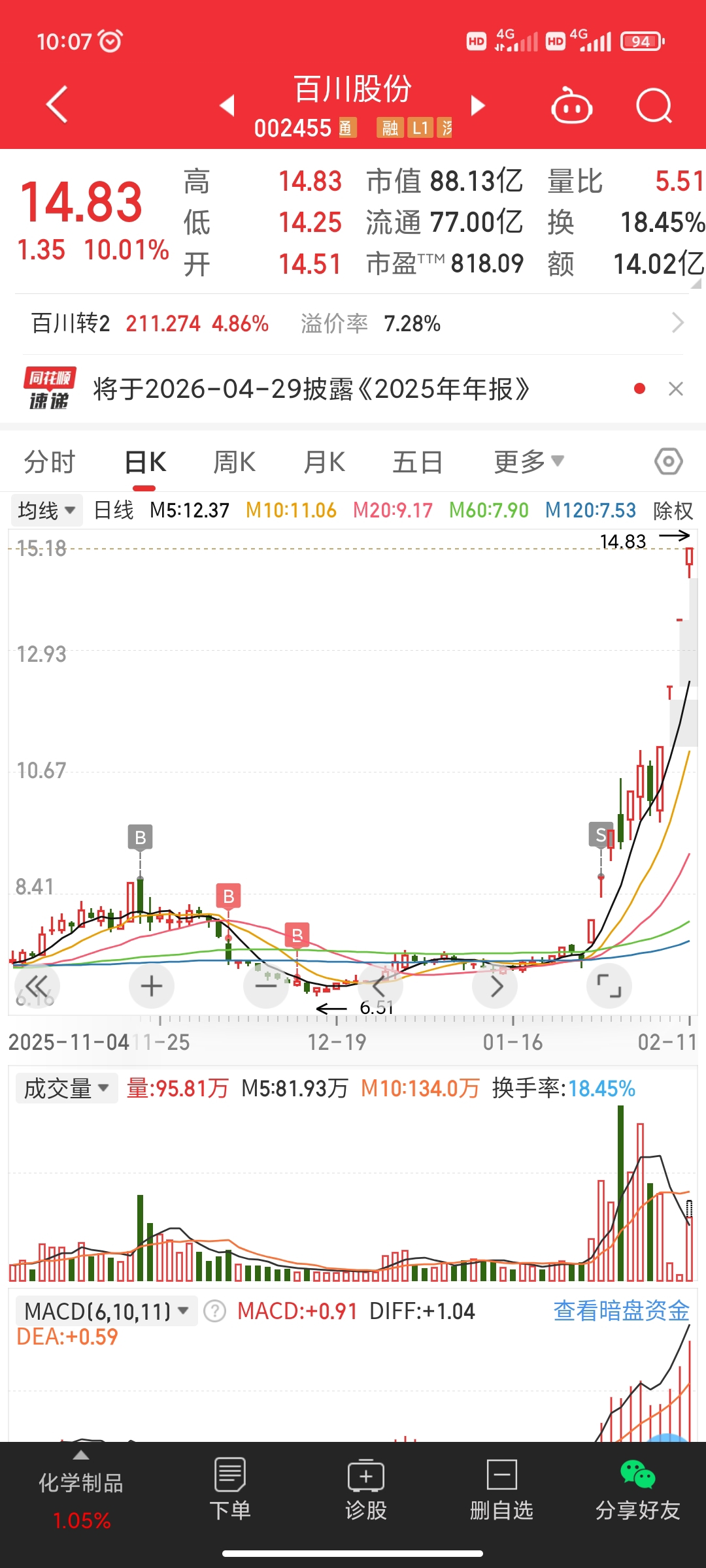 $百川股份(SZ002455)$ 根本拿不住