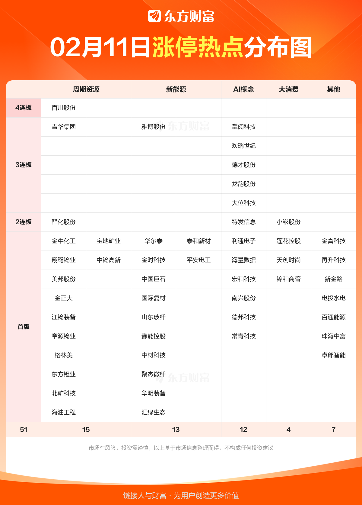 1 电子布 电子布价格上涨叠加AI算力需求激增,国产替代加速推动行业景气度提升 相关个股:$国际复材(301526)$、$宏和科技(603256)$、$中材科技(002080)$、$中国巨石(600176)$、$菲利华(300395)$ 2 钨 钨价大幅上涨,龙头企业业绩改善,资源争夺加剧推动板块热度 相关个股:$中钨高新(000657)$、$章源钨业(002378)$、$翔鹭钨业(002842)$(4天2板)、$格林美(002340)$、$厦门钨业(600549)$ 3 小金属概念 稀土产品价格加速上涨,小金属战略资源价值重估,供需格局优化推动价格上涨。 相关个股:$中钨高新(000657)$、$东方钽业(000962)$、$章源钨业(002378)$、$翔鹭钨业(002842)$(4天2板)、$北矿科技(600980)$ 4 能源金属 碳酸锂价格止跌回升预期增强,叠加锂电池需求恢复及储能行业高景气,推动能源金属板块上涨。 相关个股:$格林美(002340)$、$腾远钴业(301219)$、$华友钴业(603799)$、$盛新锂能(002240)$、$天华新能(300390)$ 5 六氟磷酸锂 碳酸锂期货价格显著上涨,市场预期供需缺口持续,价格中枢呈上升趋势。 相关个股:$新宙邦(300037)$、$天际股份(002759)$、$多氟多(002407)$、$深圳新星(603978)$、$宏源药业(301246)$市场热点