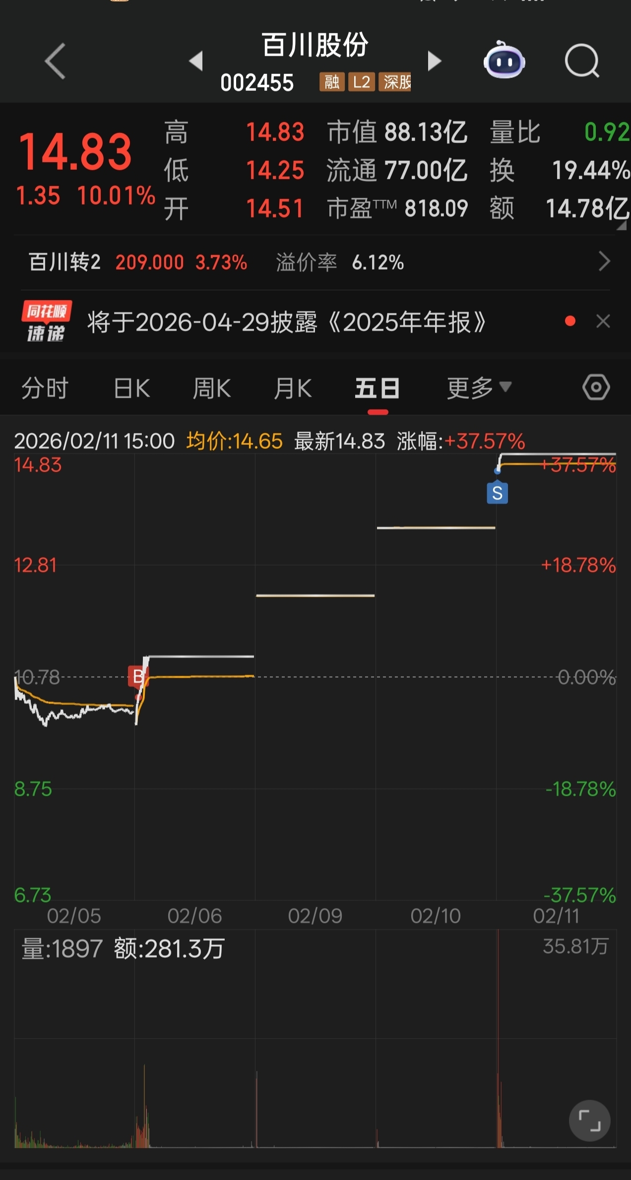$百川股份(SZ002455)$ 2026鸿运当头,祝大家继续吃肉,小弟先撤了