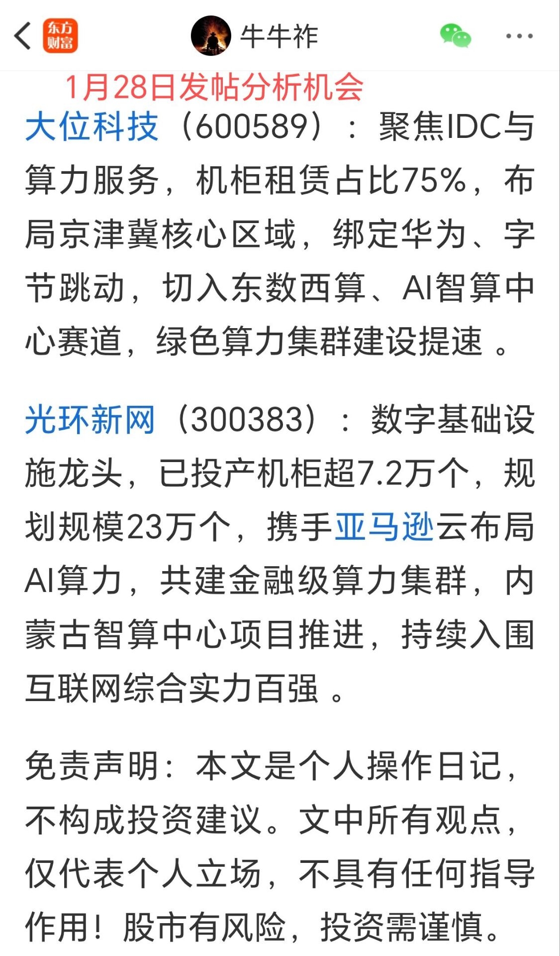 $百川股份(SZ002455)$ $大位科技(SH600589)$ $光环新网(SZ300383)$ 上周一直强调新周期,化工方向做完红宝丽接百川,算力方向大位上周一个跌停,把我吓出来了,还好周一炸板给机会接回