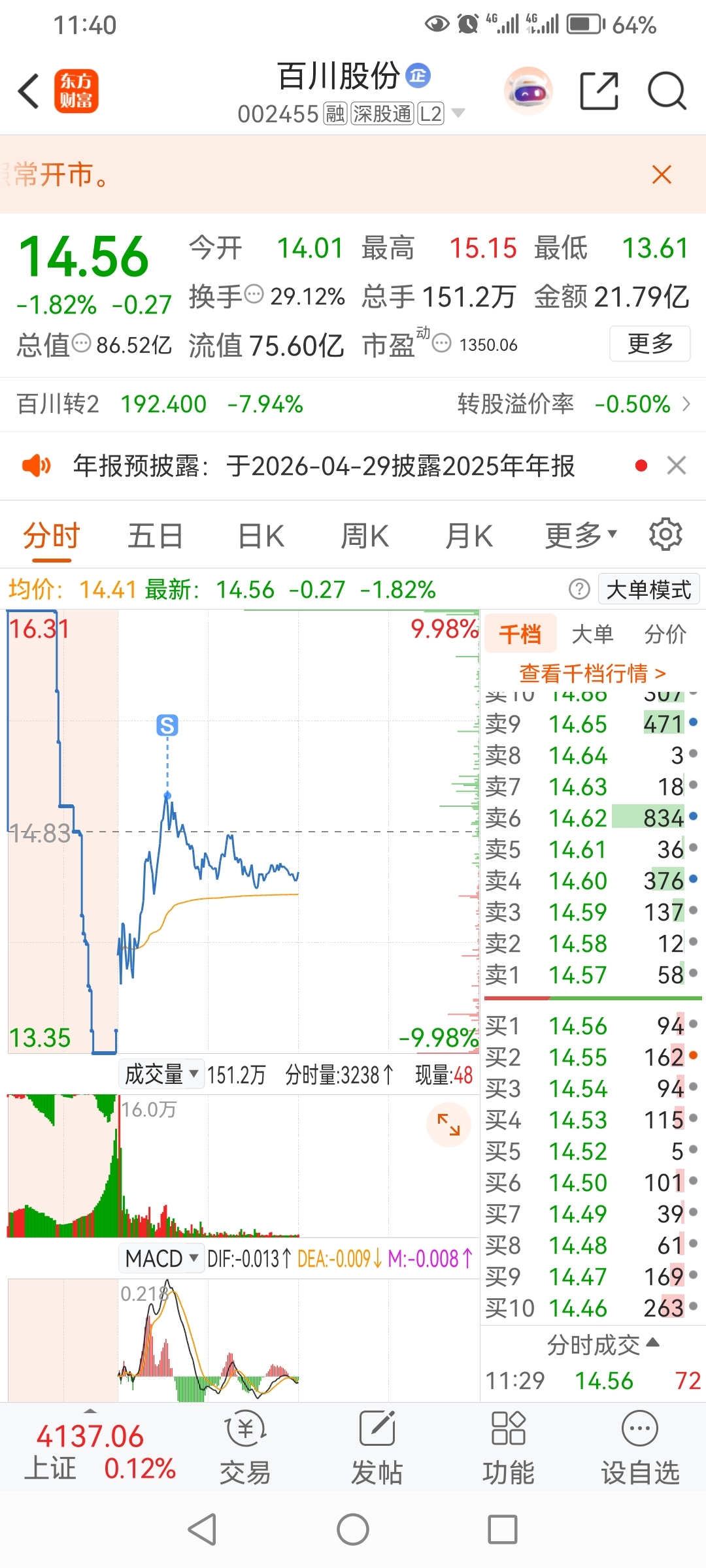 $百川股份(SZ002455)$ 竞价地板没接到!那好吧,清完了明天领红包
