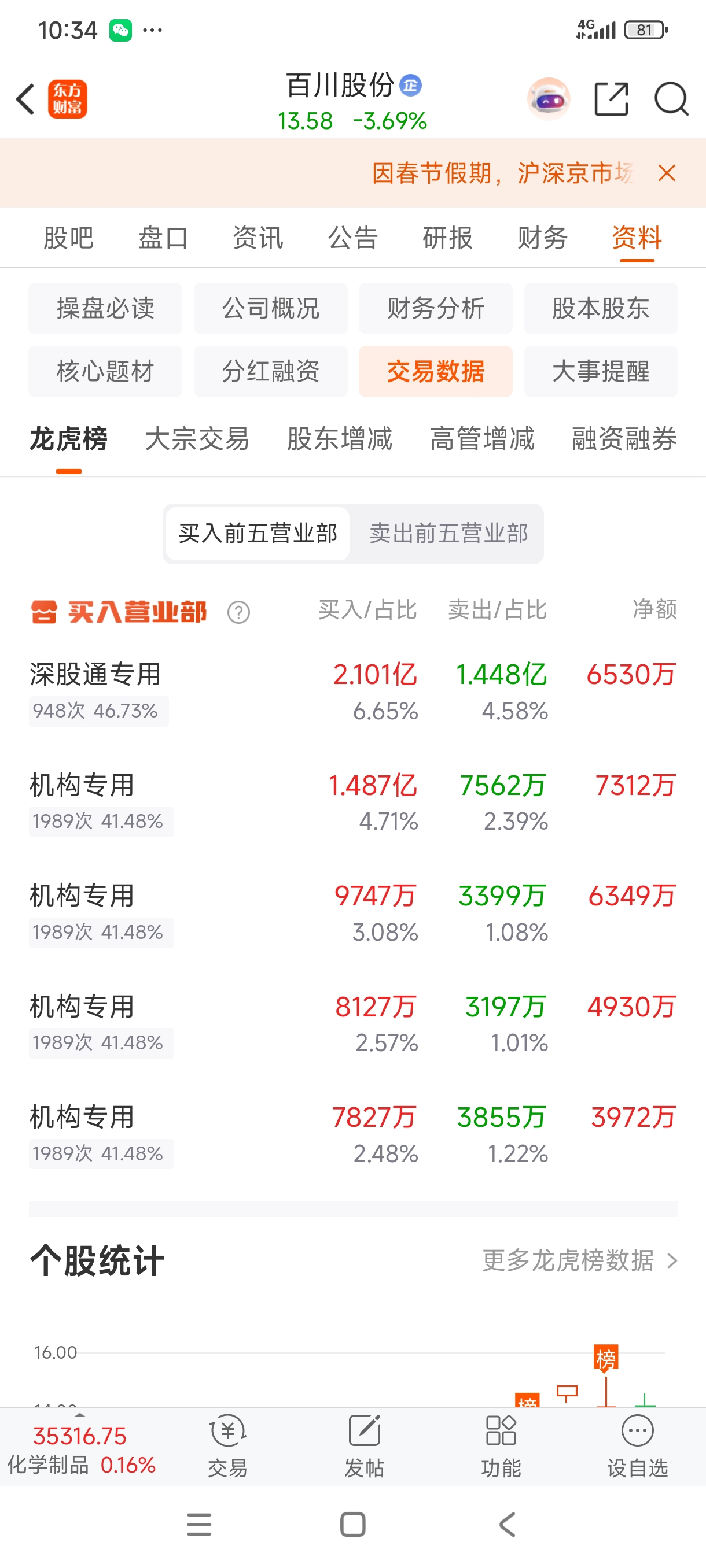 $百川股份(SZ002455)$ 机构都这么嚣张的诱导投资了,四个机构买入次数都一样样的,