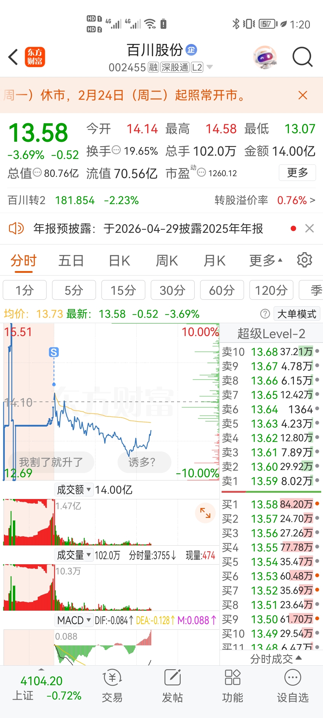 $百川股份(SZ002455)$ 涨停我大板好吧