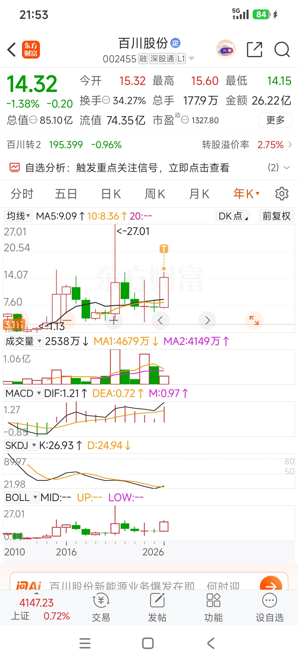 $百川股份(SZ002455)$ 继续T,成本低。