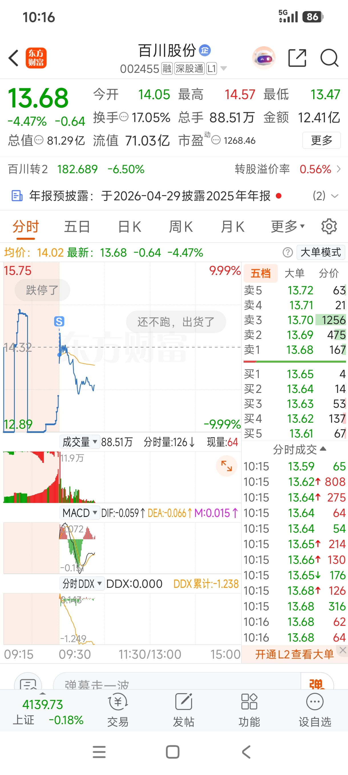 $百川股份(SZ002455)$ 终于卖了