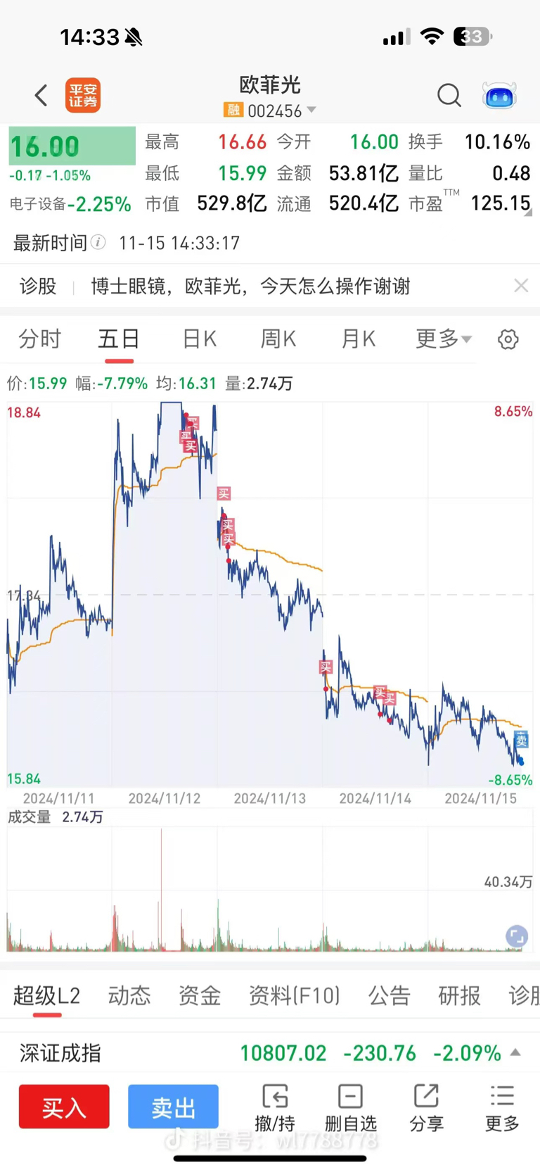 $欧菲光(SZ002456)$ 教你们做T,只要你们用心学,就能做到高抛低吸。