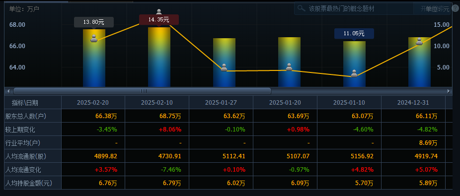 截止2月20日股东人数减少-3.45%,散户洗出不少2.37万户
