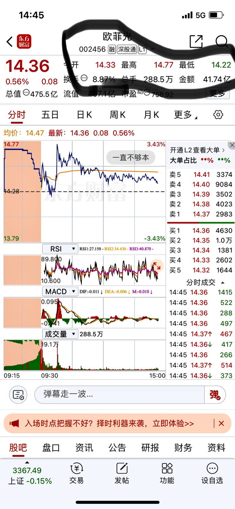$欧菲光(SZ002456)$ 真会玩,14.22 14.33. 14.77