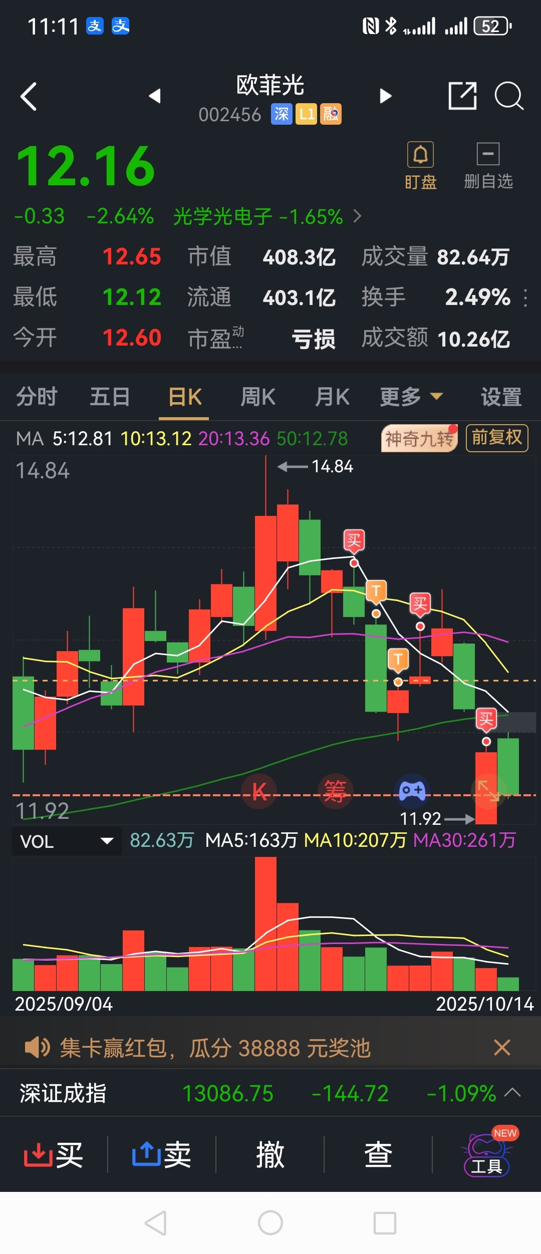 $欧菲光(SZ002456)$ 只要手里有子弹不怕它下来大胆加