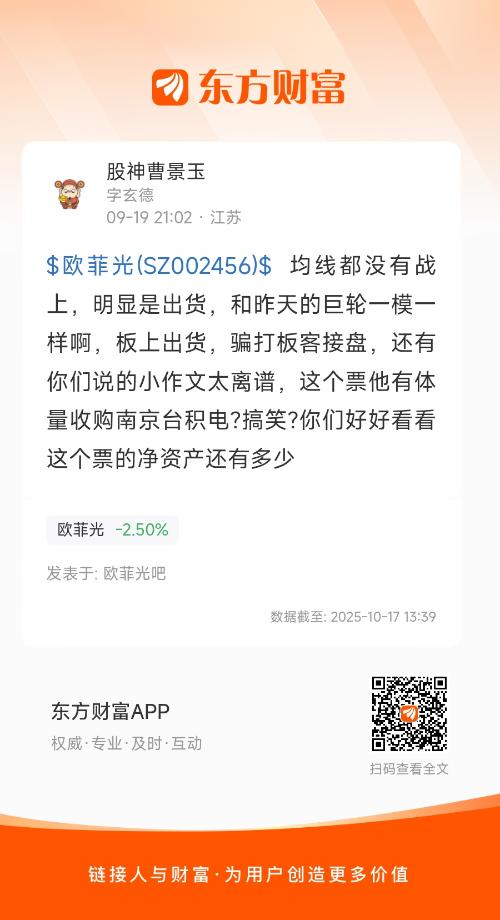 $欧菲光(SZ002456)$ 均线都没有战上,明显是出货,和昨天的巨轮一模一样啊,板上出货,骗打板客接盘,还有你们说的小作文太离谱,这个票他有体量收购南京台积电?搞笑?你们好好看看这个票的净资产还有多少