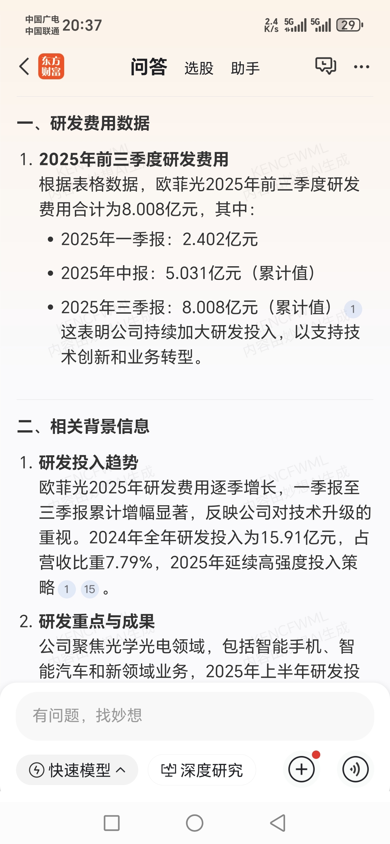 $欧菲光(SZ002456)$ 欧菲光还是可以的前三季度研发费用都干了8个亿。