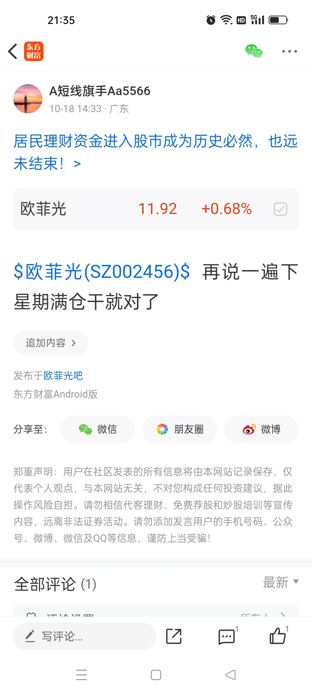 温馨提示: 1.根据《证券法》规定,禁止编造、传播虚假信息或者误导性信息,扰乱证券市场;2.用户在本社区发表的所有资料、言论等仅代表个人观点,与本网站立场无关,不对您构成任何投资建议。用户应基于自己的独立判断,自行决定证券投资并承担相应风险。《东方财富社区管理规定》