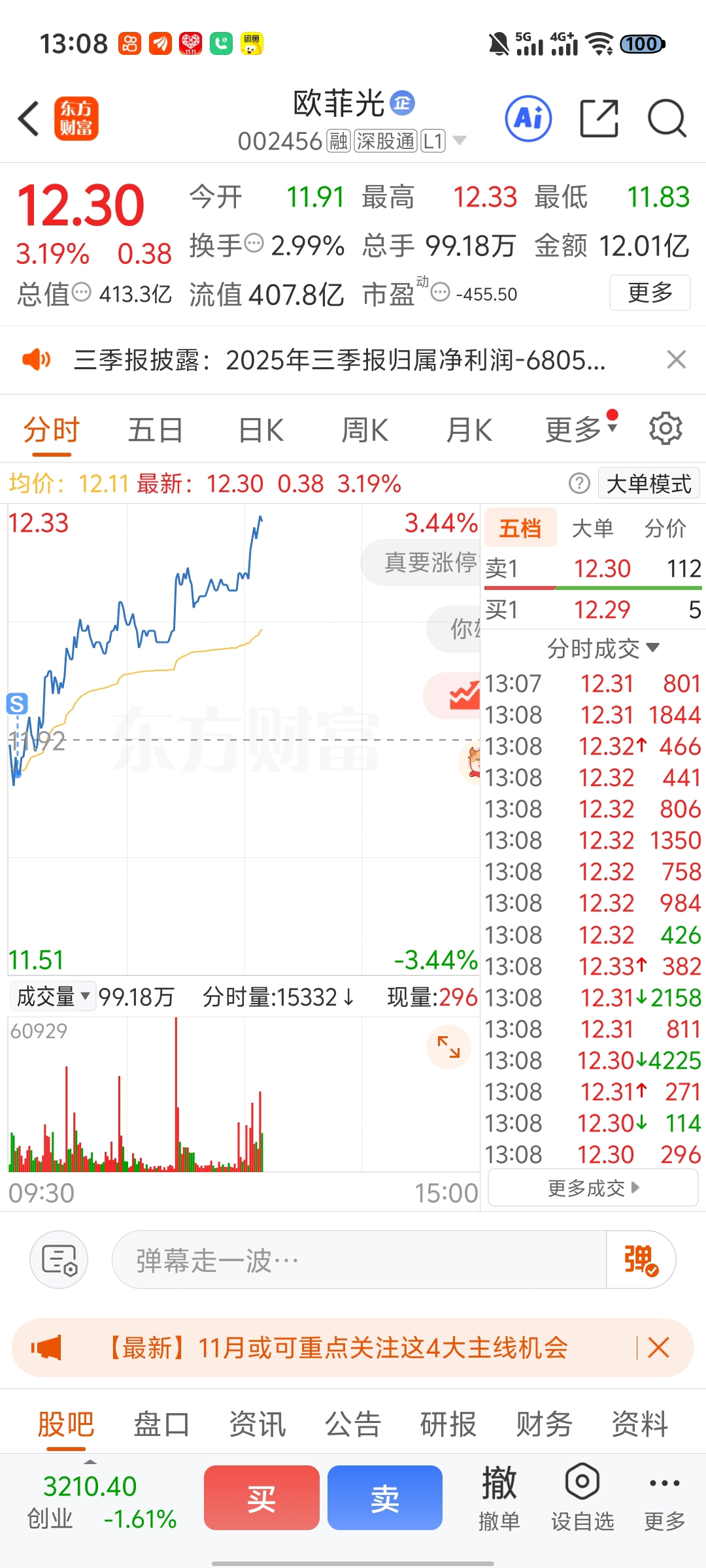 $欧菲光(SZ002456)$ 一割就大涨