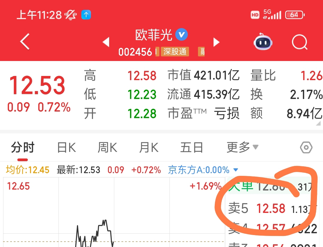 $欧菲光(SZ002456)$ 万手大单压着。。难涨。。 下午跌停出货了。。我的六千粉丝给我一起做见证。