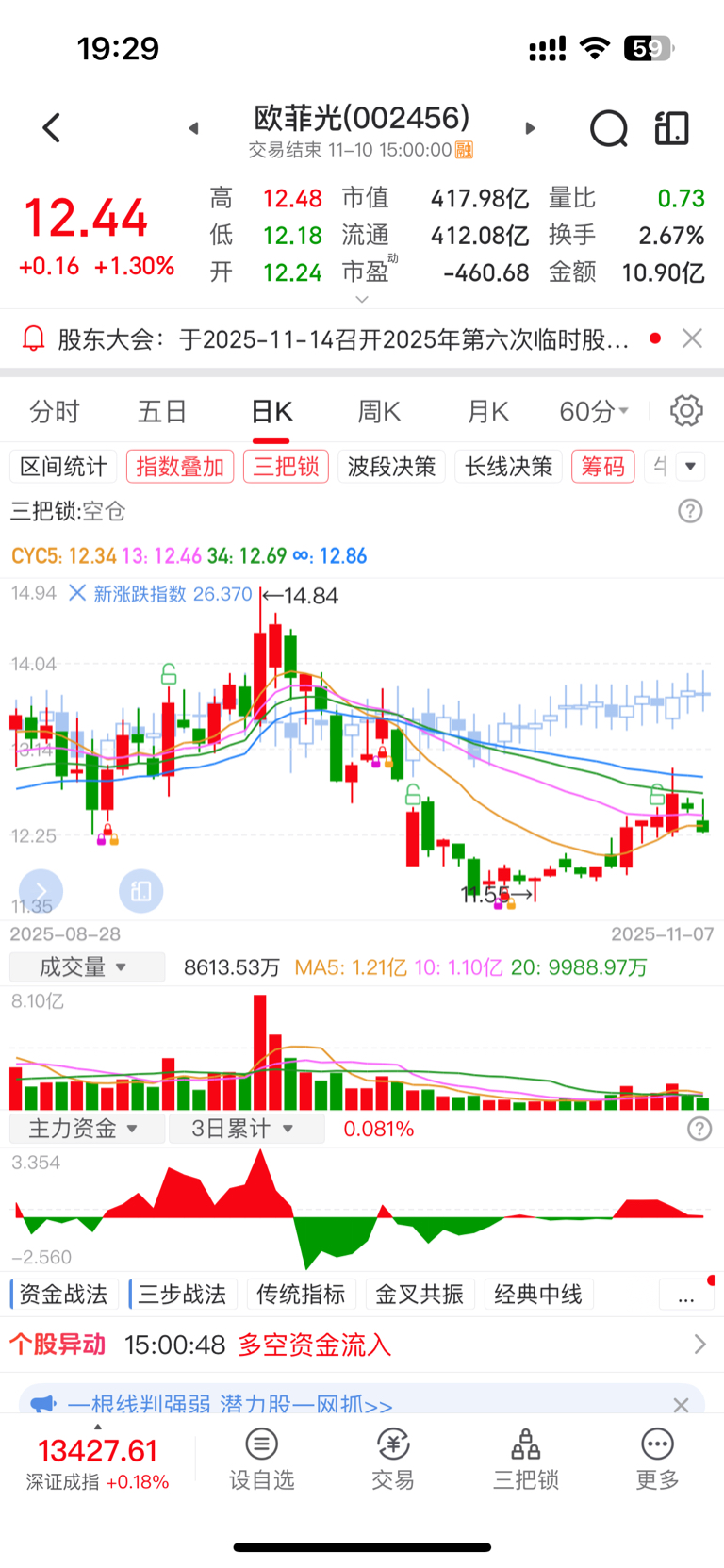 $欧菲光(SZ002456)$ 还没有提示三把锁买入信号,大家可以再等一等,耐心一点