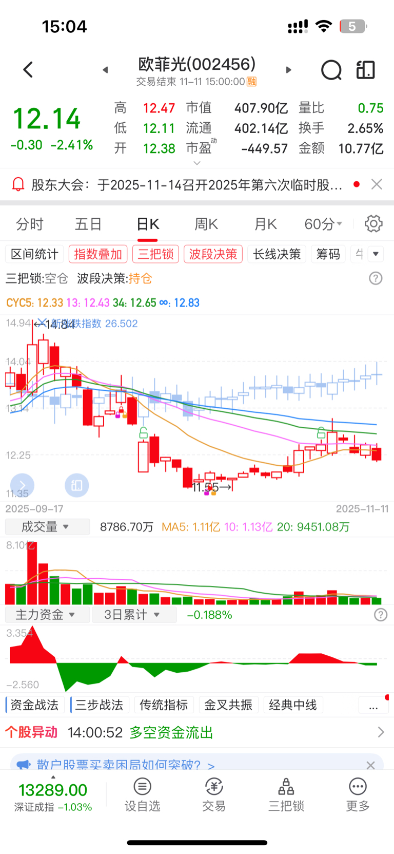 $欧菲光(SZ002456)$ 早就提示了卖出信号,三把锁买入信号暂时还没有,没买的可以再观望一下