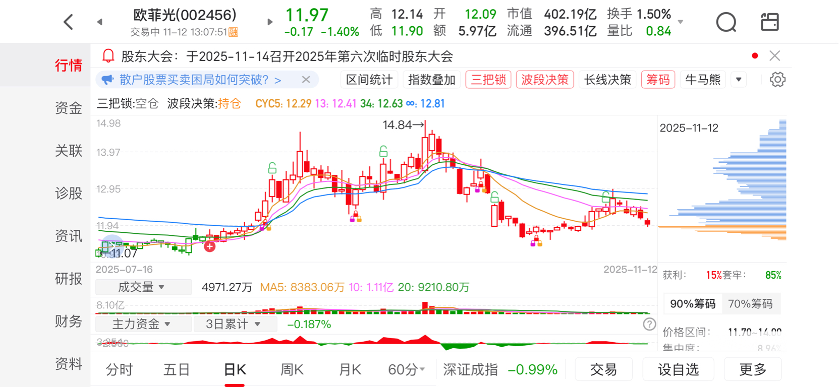 $欧菲光(SZ002456)$ 上方套牢还是比较多,波段建议还是持仓,等待筑底吧