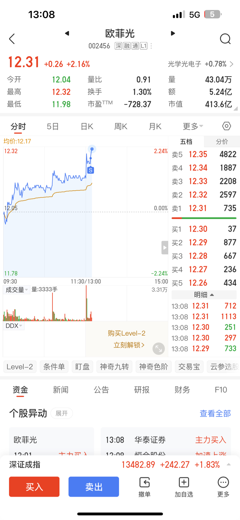 $欧菲光(SZ002456)$ 搞了几千块,先撤了,谢谢主力