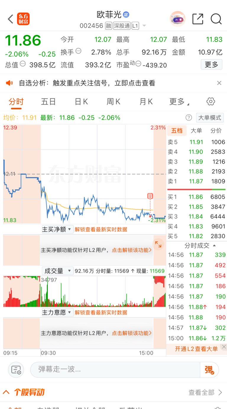 $欧菲光(SZ002456)$ 尾盘满仓进去,明天会不会被活埋?