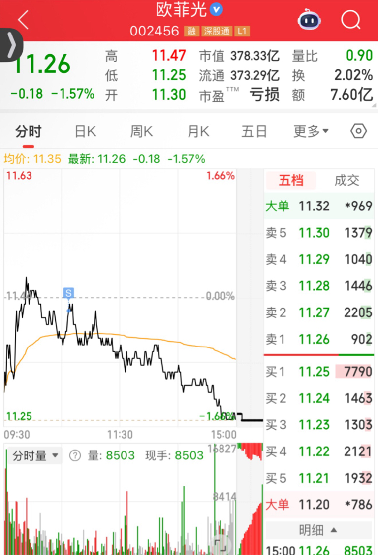 卖了欧菲买了其他股一下子回血3个点,加上欧菲卖出再跌,差了4.8个点