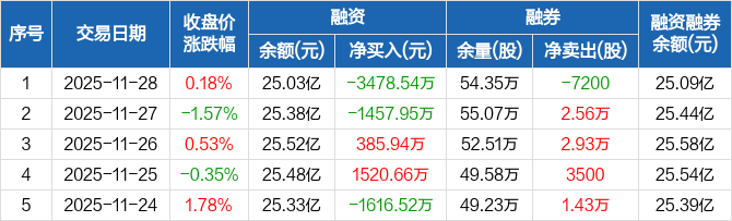 欧菲光:融资净偿还3478.54万元,融资余额25.03亿元(11-28)