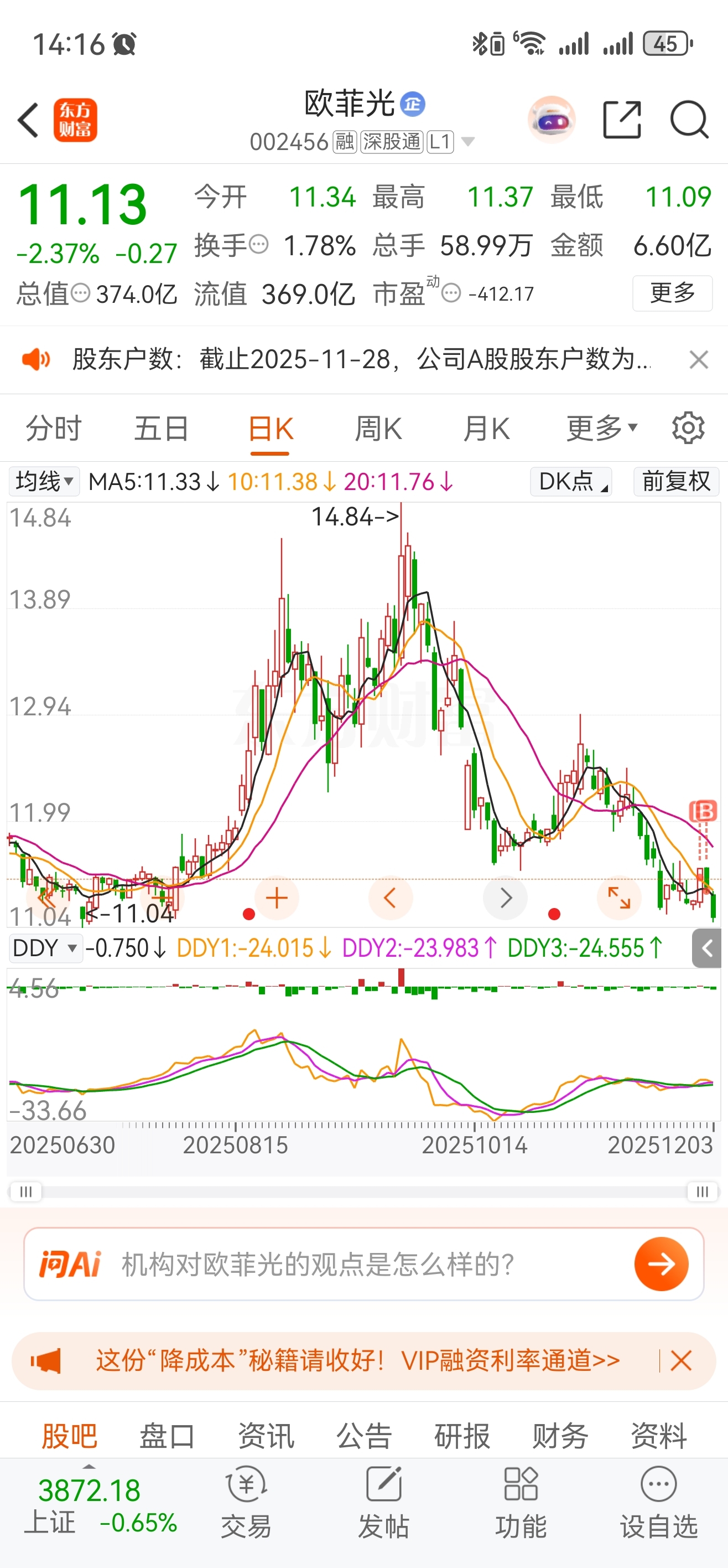 $欧菲光(SZ002456)$ 看到这个上涨点我才买入,这个点位处于60日线附近,但没想到,还能突破60日线继续大幅度探底下跌,简直醉了