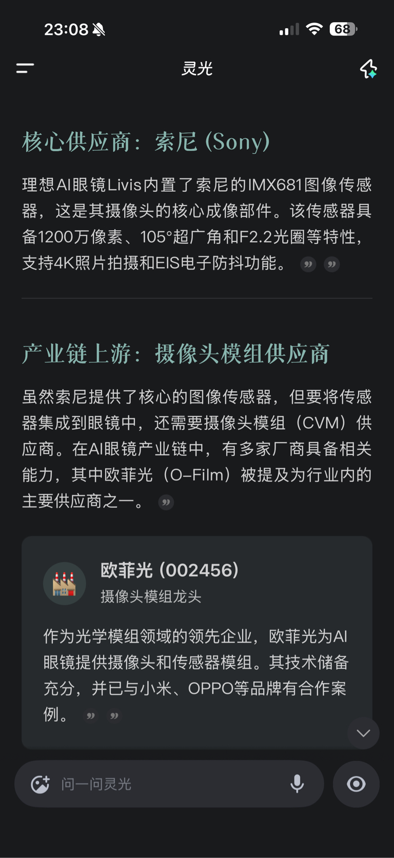 $欧菲光(SZ002456)$ 理想Ai眼镜 欧菲光