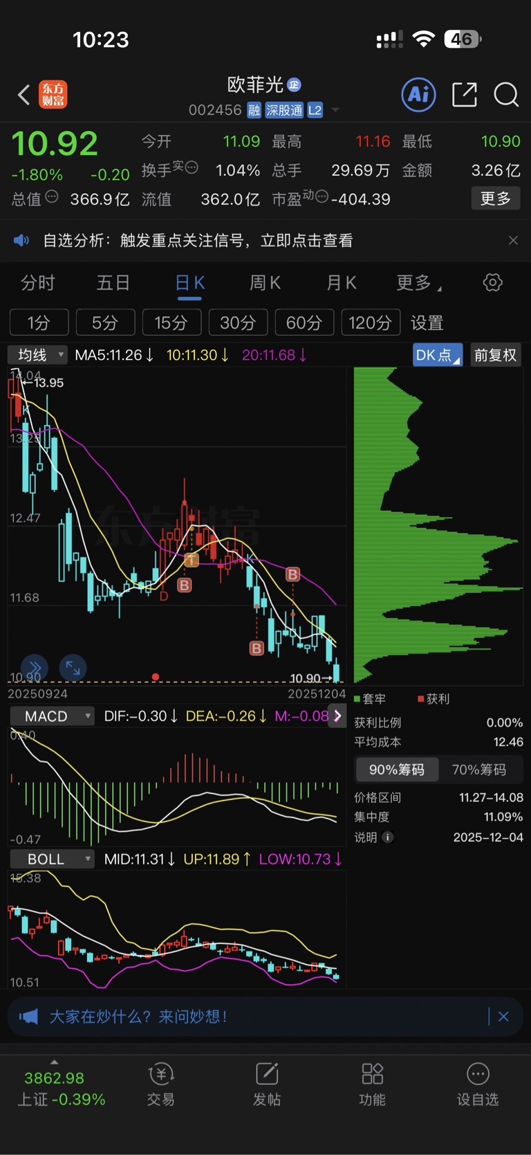 $欧菲光(SZ002456)$ 0%的获利率,哈哈哈哈来了全给我套住,还想走