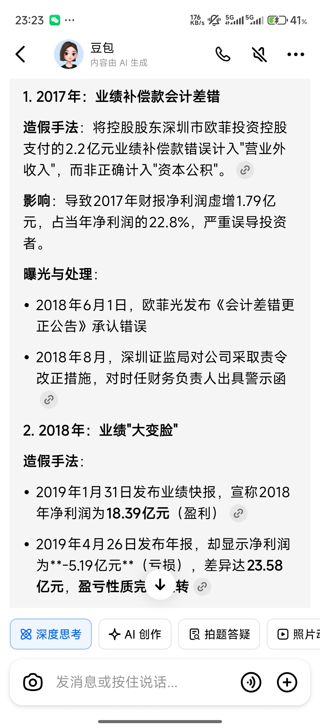 $欧菲光(SZ002456)$ 有造假前科,欧亏光