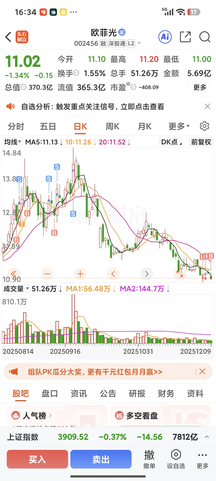 $欧菲光(SZ002456)$ 兄弟们,冲啊