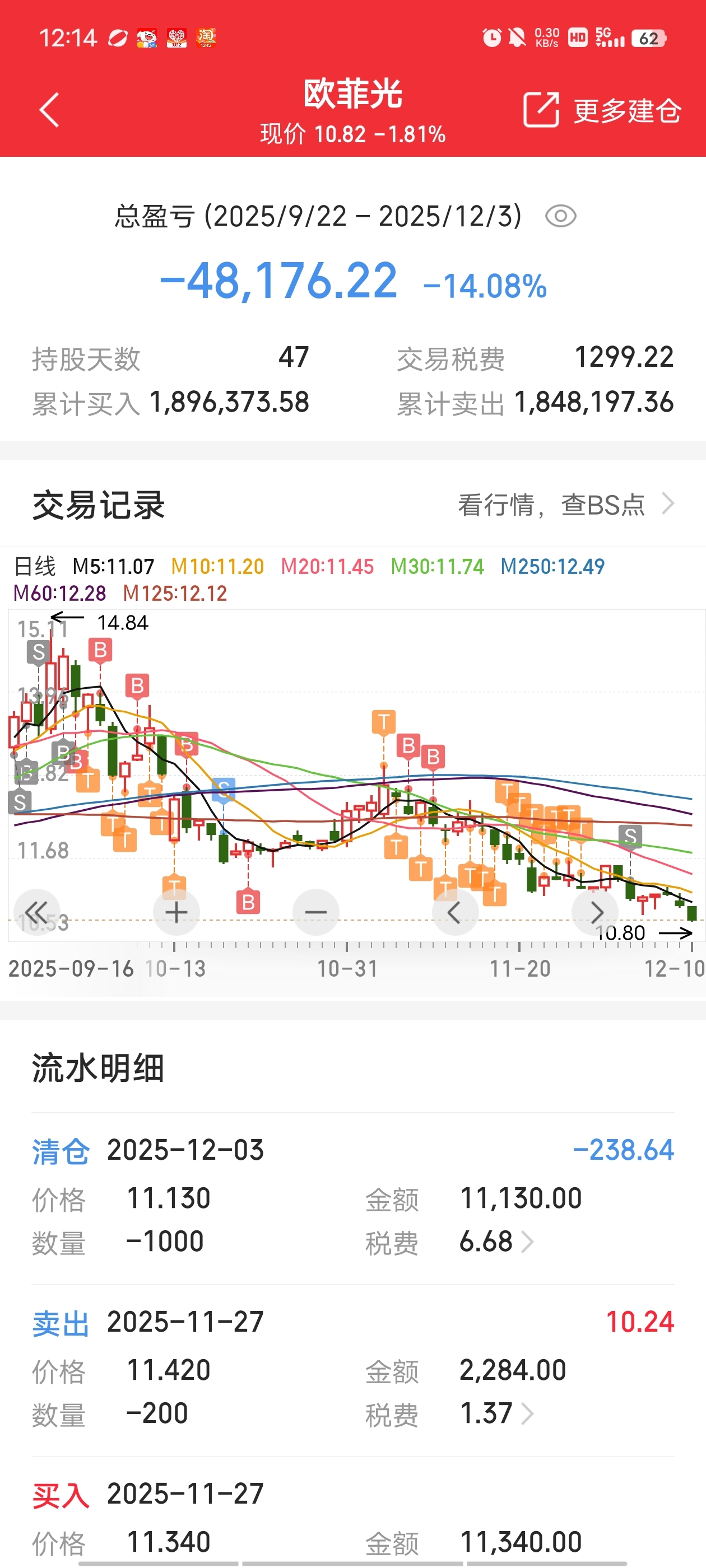 $欧菲光(SZ002456)$ 赚小亏大,多拿两个月直接抄我家,以后再碰你,我就是。血的教训,太痛苦了
