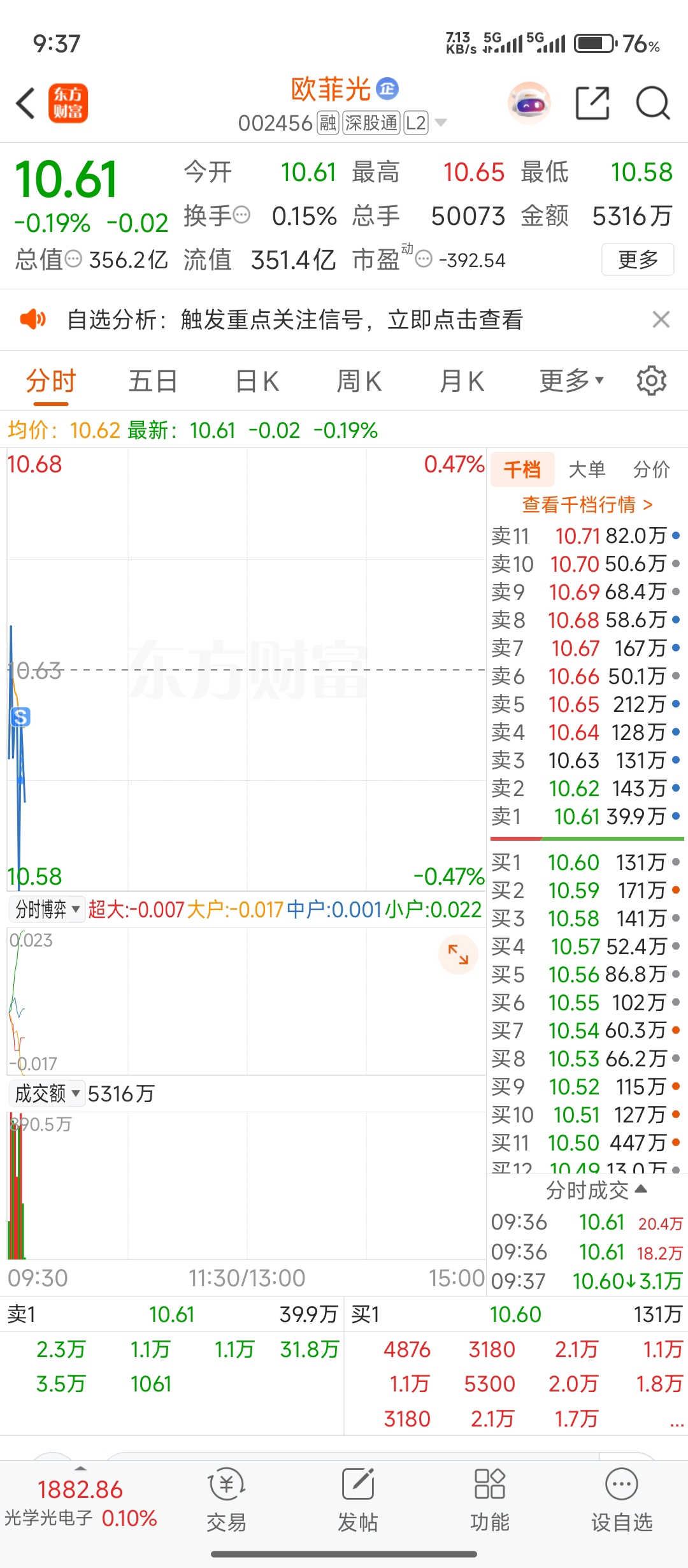 $欧菲光(SZ002456)$ 早上跑了,一点都不能格局