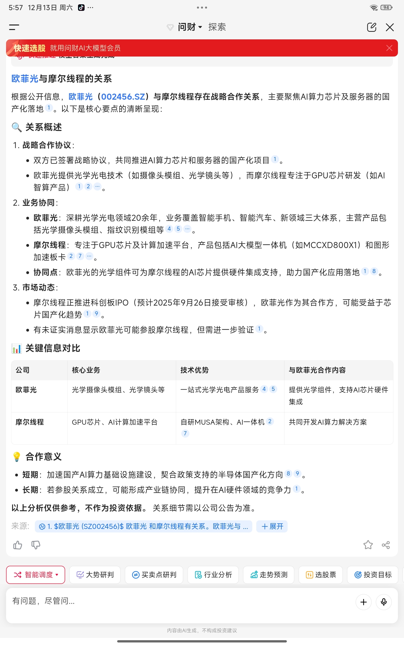 欧菲光和摩尔线程是战略合作关系,摩尔把钱存银行理财,不会搞搞欧菲微电子吗