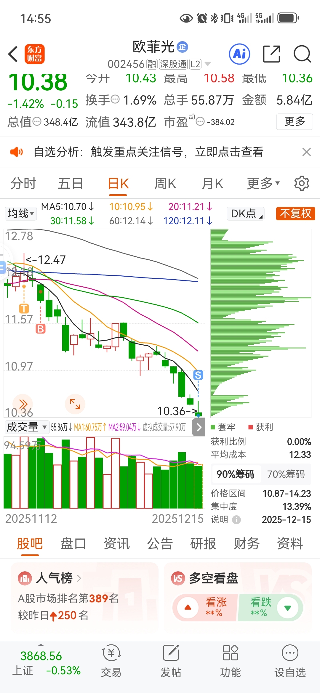 $欧菲光(SZ002456)$ 抗不住了,走了