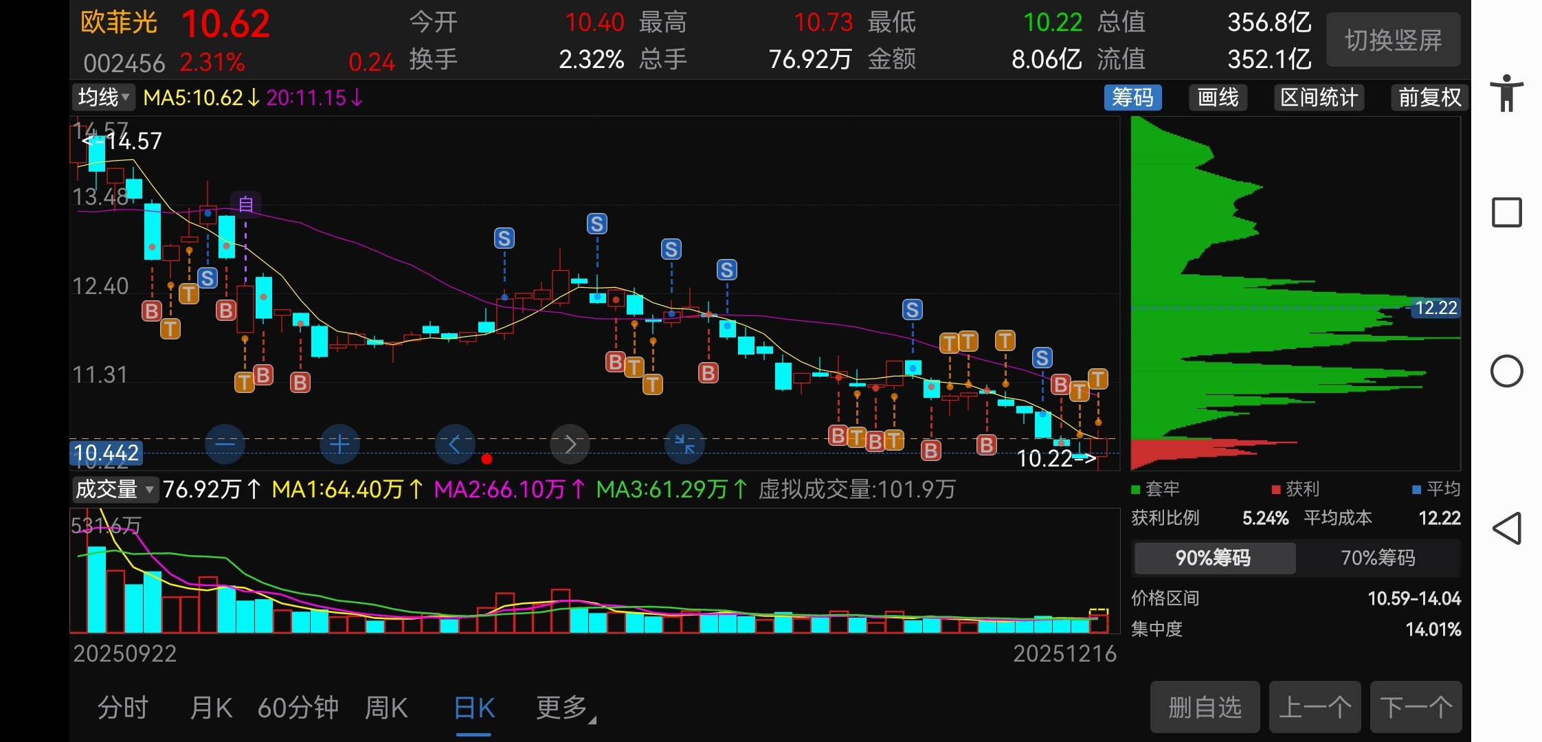$欧菲光(SZ002456)$ 被背离的0BV指标诱入,从13块多开始套,一路做T降成本,今天我终于解套了