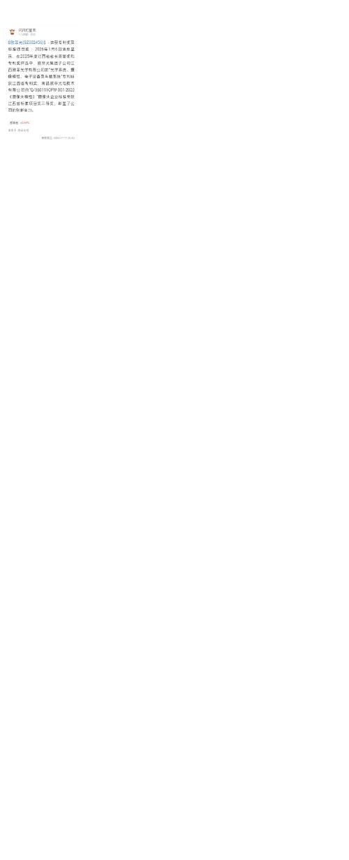 $欧菲光(SZ002456)$ - 荣获专利奖及标准项目奖 :2026年1月6日消息显示,在2025年度江西省省长质量奖和专利奖评选中,欧菲光集团子公司江西欧菲光学有限公司的“光学系统、摄像模组、电子设备及车载系统”专利斩获江西省专利奖,南昌欧菲光电技术有限公司的“Q/360111OFW 001-2020《摄像头模组》”摄像头企业标准荣获江西省标准项目奖三等奖,彰显了公司的创新实力。