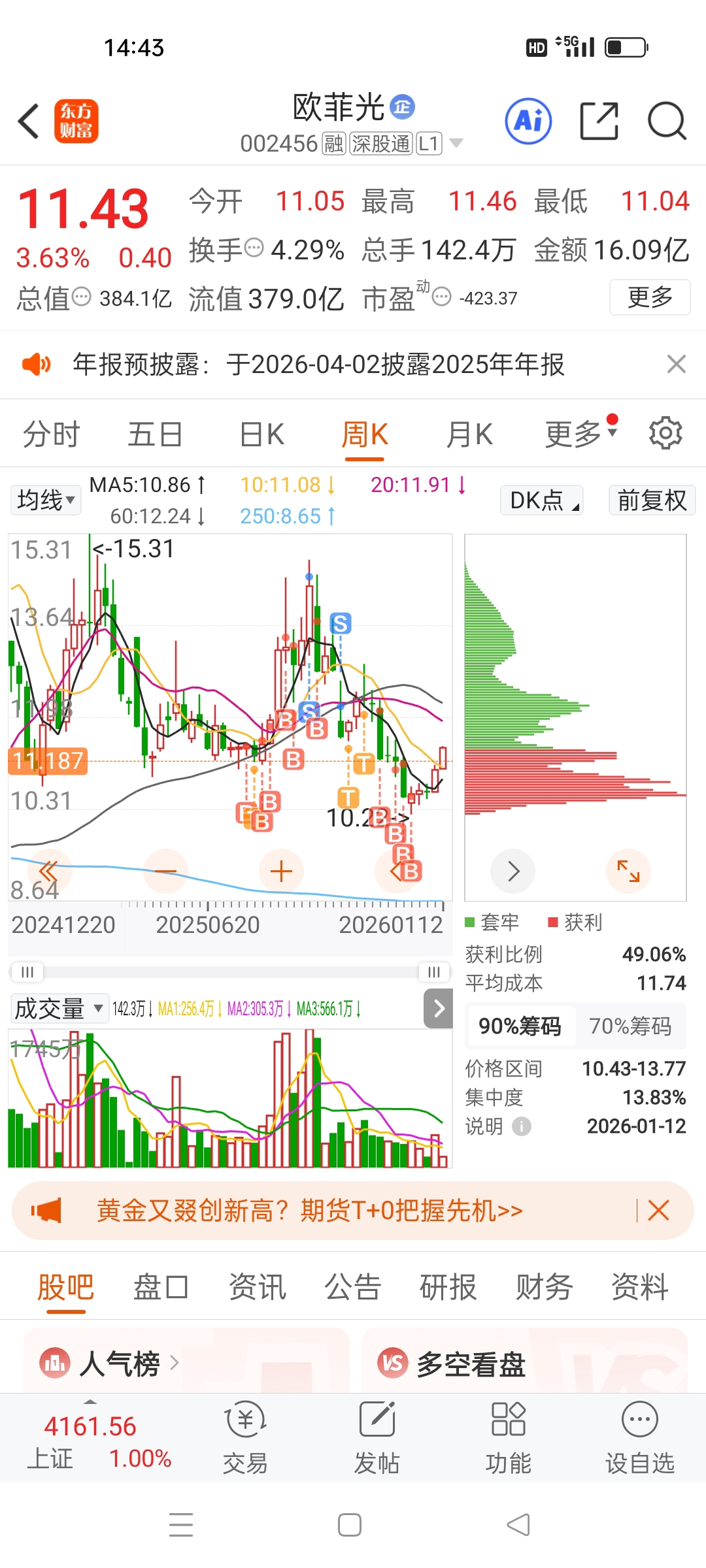 $欧菲光(SZ002456)$ 欧亏光真的是我的福将