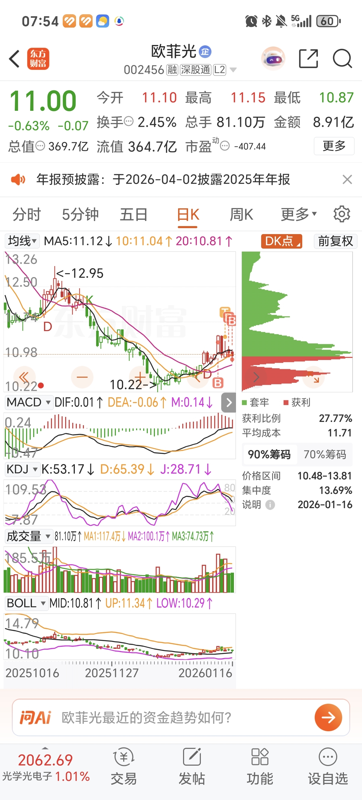 $欧菲光(SZ002456)$ 兄弟们,我来救你们啦