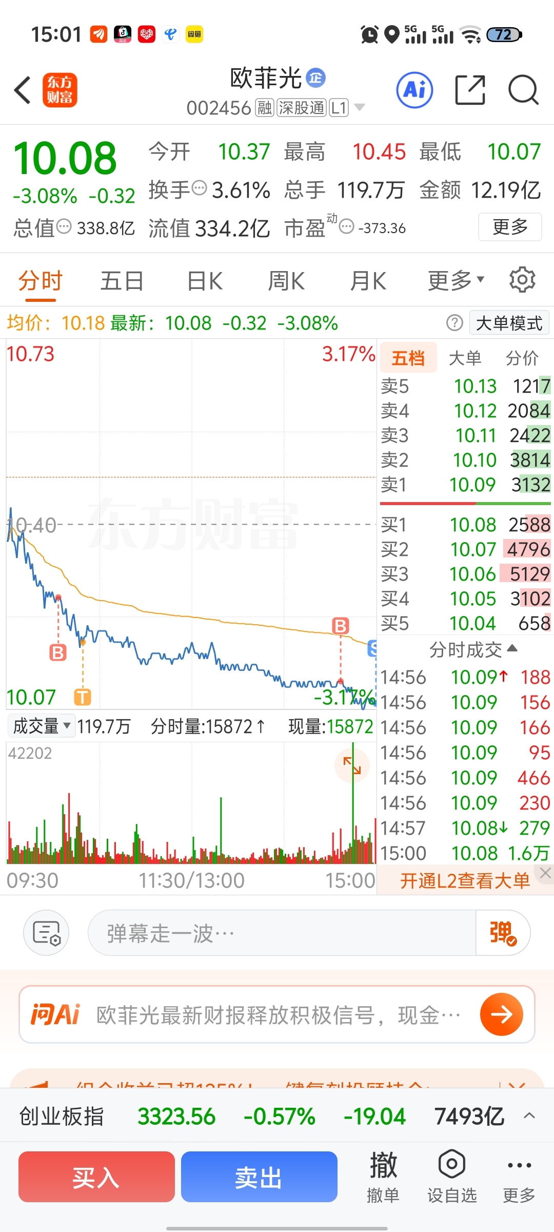 $欧菲光(SZ002456)$ 尾盘把能割的都割了,我受不了了,快疯了