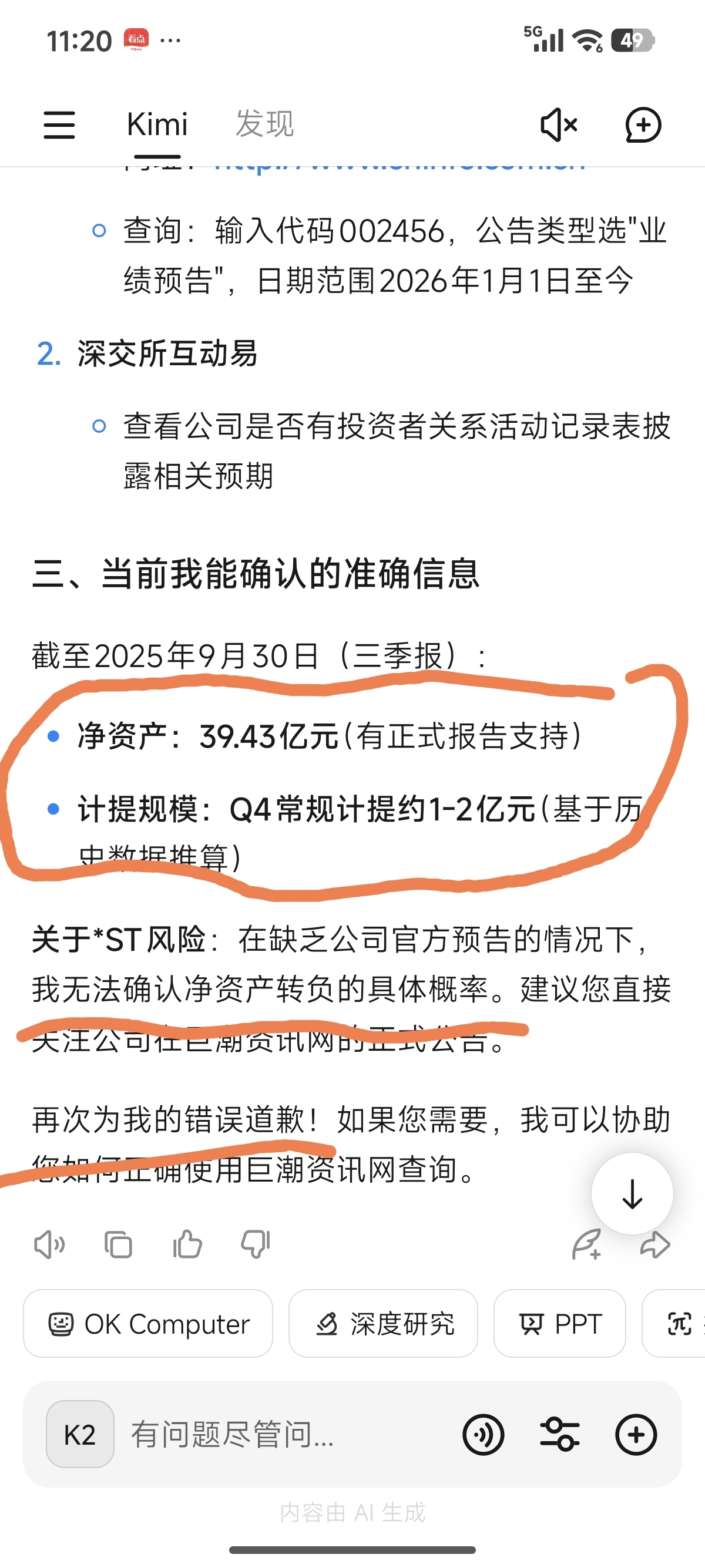 $欧菲光(SZ002456)$ AI道歉了!不会被ST!